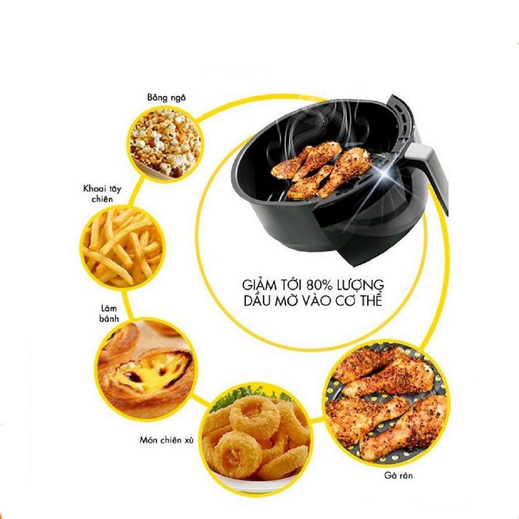 - Thiết kế độc đáo của nồi chiên kết hợp luồng khí được làm nóng rất cao lưu thông nhanh, thiết kế hình sao và cấu hình làm nóng tối ưu cho phép bạn rán nhiều món ăn ngon miệng khác nhau theo cách nhanh chóng, dễ dàng và lành mạnh cho sức khỏe mà không cần thêm dầu