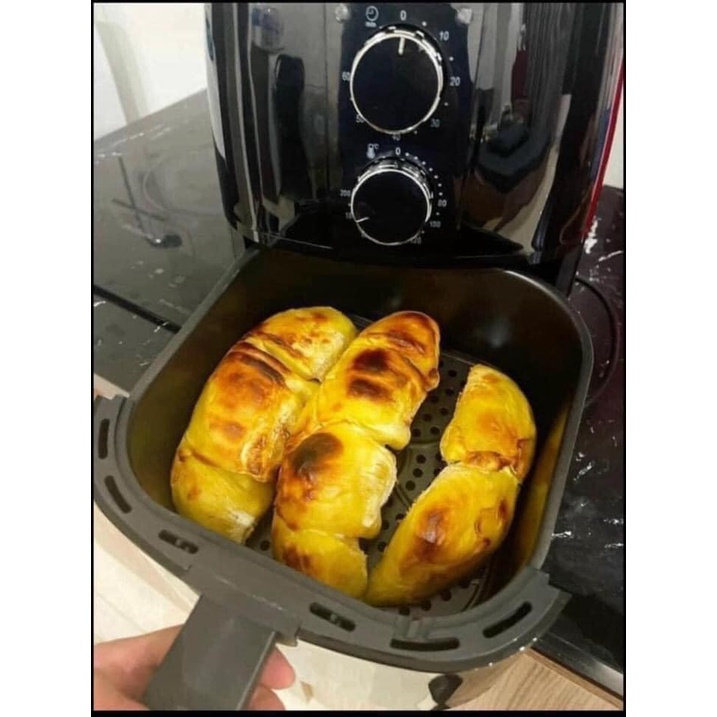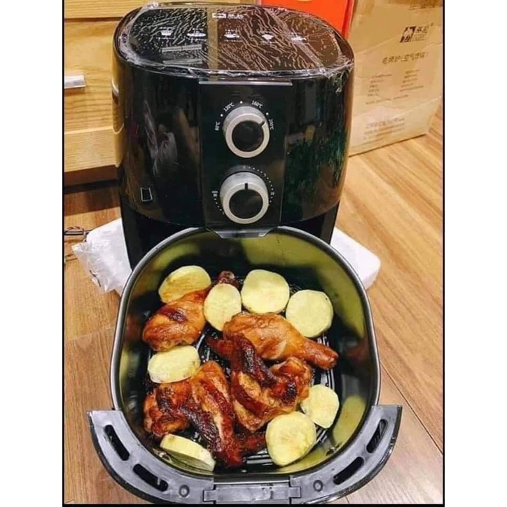 - Nồi quay được cả con gà to vật vã luôn nhé. Nướng bánh, làm khoai tây chiên, các mòn gì liên quan tới nướng, chiên đều làm được hết nhé.