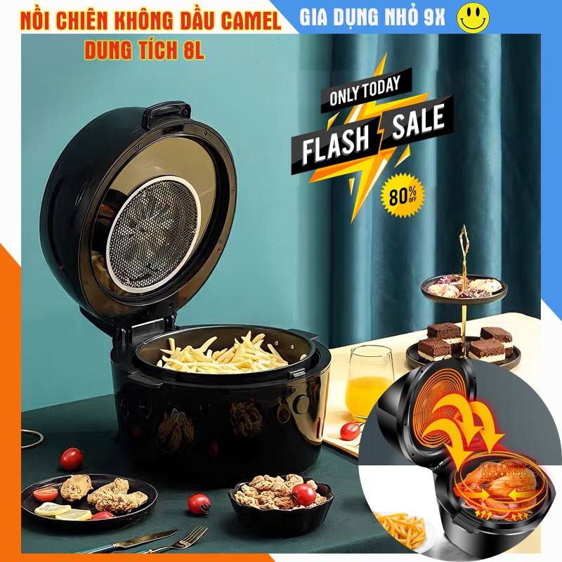Nồi chiên không dầu CAMEL 8 LÍT- Cảm Ứng Điện Tử, Núm Vặn Cơ Công Suất 1500W, công nghê xoay 360 độ - Bảo hành 1 năm