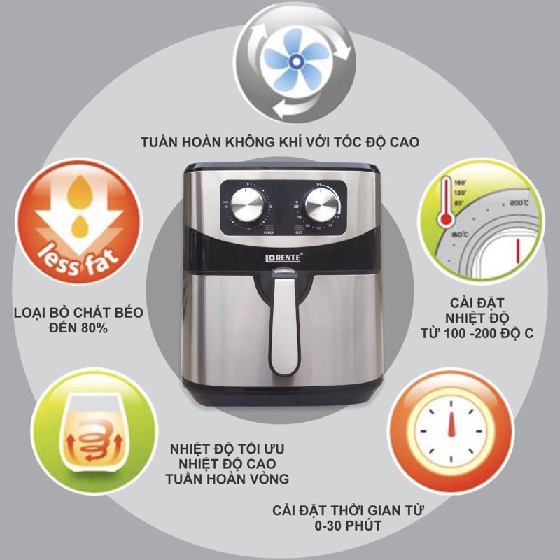 Nồi chiên không dầu CAMEL- 8 Lít Và Nồi Chiên Lorente 8Lít Chính Hãng