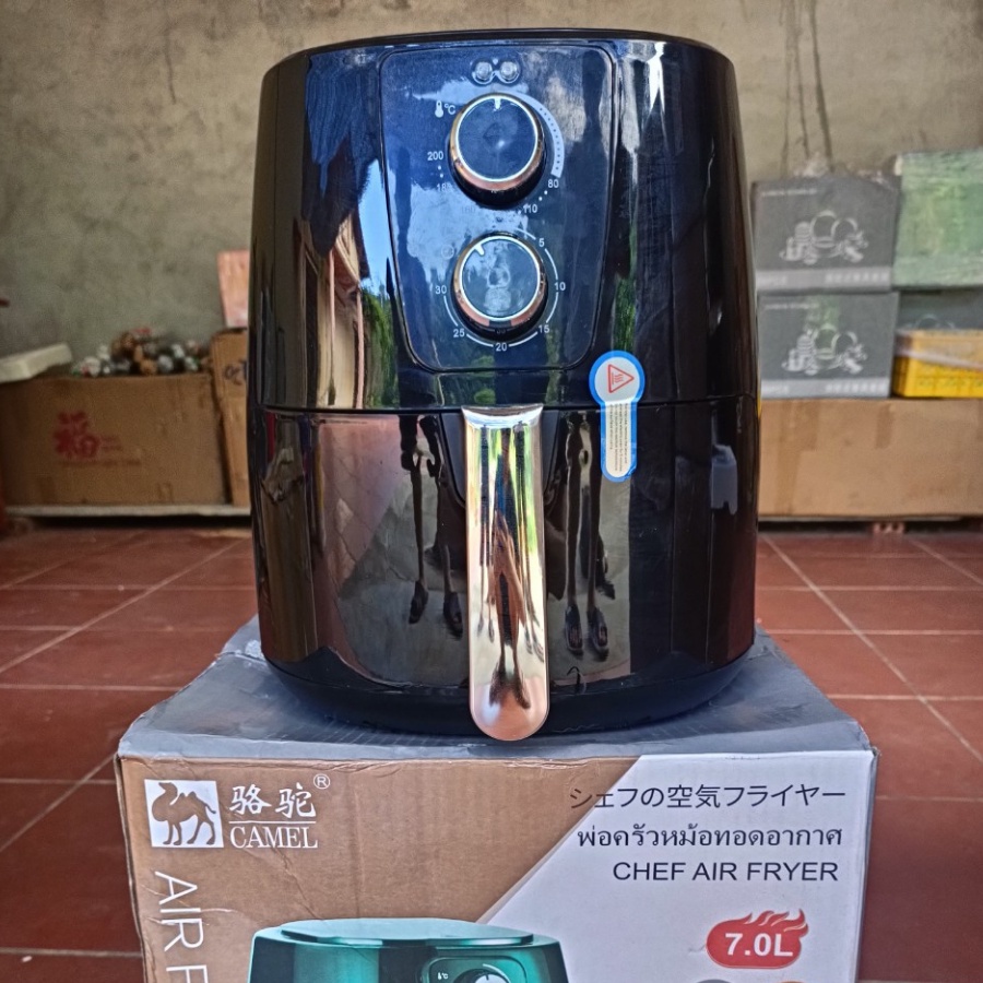Nồi chiên không dầu camel dung tích 6,5 lít CAMEL, phù hợp cho gia đình trên 5 nguời ăn.Nồi chiên không dầu Camel của nước nào? Camel là sản phẩm nồi chiên không dầu nội địa Trung Quốc, sản xuất theo công nghệ Nhật Bản. Theo thông tin của nhà sản xuất, nồi chiên Camel ứng dụng công nghệ chiên nướng Rapid Air, cho phép bạn chiên nướng thơm ngon, chín giòn, mà không cần sử dụng đến dầu mỡ. Với công nghệ tiên tiến, ngoài khả năng chiên nướng không cần dầu, nồi chiên không dầu Camel còn có thể loại bỏ đến 80% lượng dầu mỡ có sẵn trong món ăn. Đảm bảo người dùng ăn nhiều món chiên nướng giòn thơm, hấp dẫn mà không bị “ngán” dầu, bảo vệ sức khỏe hiệu quả.