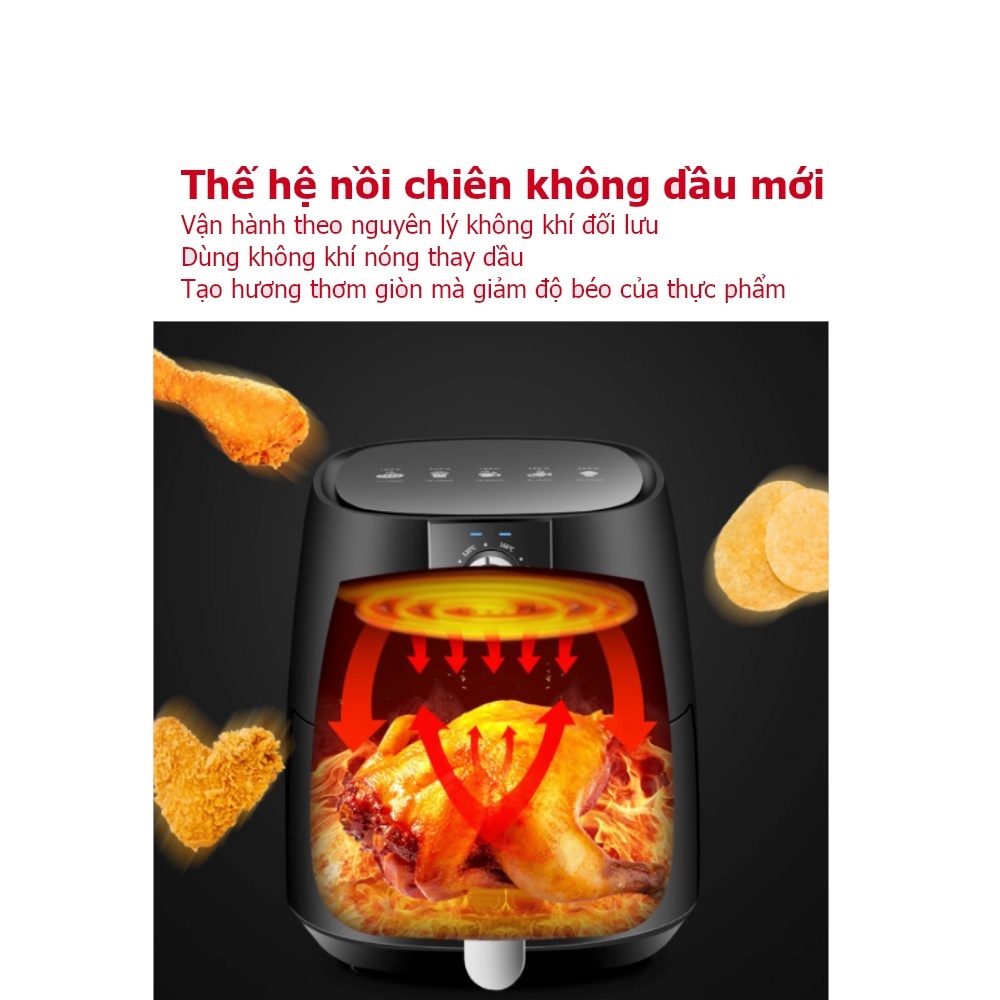 - Công nghệ mới cho phép bạn rán, nướng bánh, nướng và quay thực phẩm nhanh chóng, ít chất béo hơn so với nồi chiên thông thường nhờ việc sử dụng không có dầu, an toàn cho sức khỏe