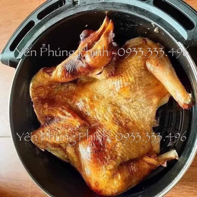 - Nồi quay được cả con gà to vật vã luôn nhé. Nướng bánh, làm khoai tây chiên, các mòn gì liên quan tới nướng, chiên đều làm được hết nhé.