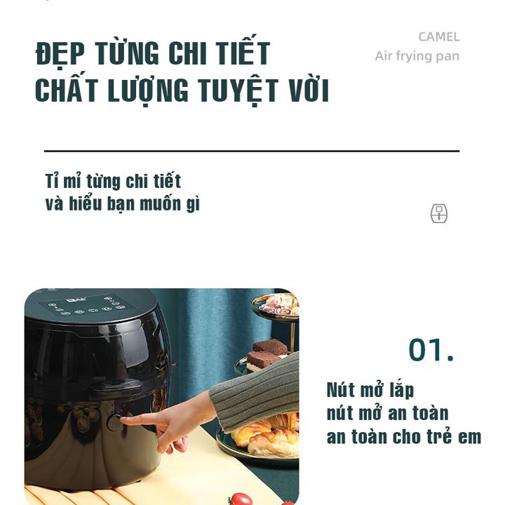 Thiết Bị Điện Gia Dụng > Đồ gia dụng nhà bếp > Nồi chiên không dầu || Nồi chiên không dầu Camel CHÍNH HÃNG, dung tích 8L-12L, công suất 1500W nướng nguyên con gà cực nhanh BẢO HÀNH 12 THÁNGCòn hàng