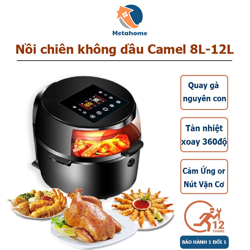 Nồi chiên không dầu Camel CHÍNH HÃNG, dung tích 8L-12L, công suất 1500W nướng nguyên con gà cực nhanh BẢO HÀNH 12 THÁNG