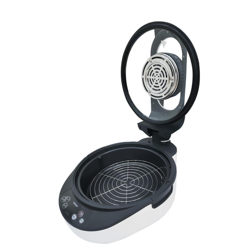 - Hệ thống quạt đối lưu cũng được gắn trên nắp nồi, tạo sự lưu thông nướng đều các loại thực phẩm.