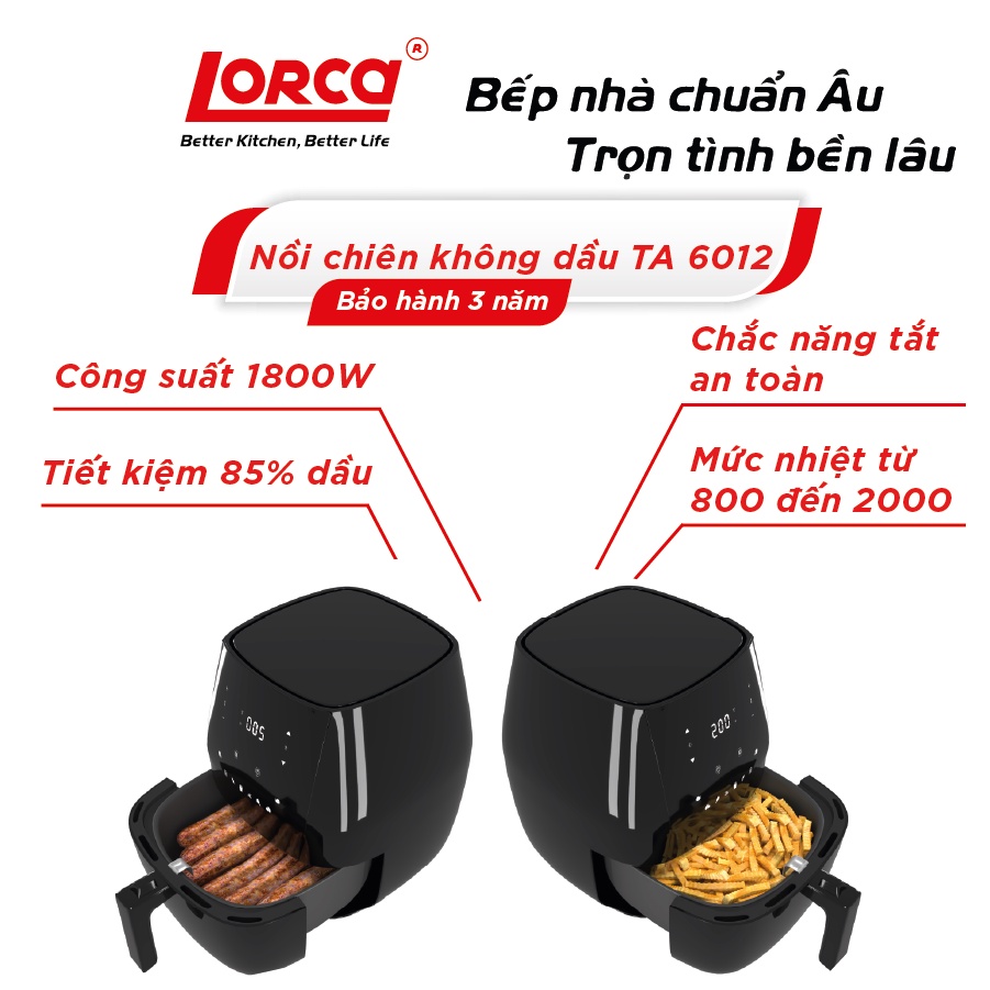 Thiết Bị Điện Gia Dụng > Đồ gia dụng nhà bếp > Nồi chiên không dầu || [Mã ELMALL10 giảm 10% đơn 500K] Nồi chiên không dầu Lorca TA 6012 dung tích 7 lít bảo hành 3 nămCòn hàng