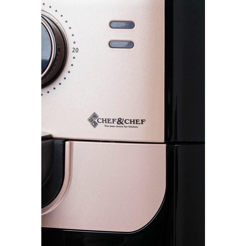 + Nồi chiên không dầu Chef&Chef sử dụng cảm biến nhiệt độ và thời gian, điều khiển cơ với hai nút xoay điều chỉnh nhiệt độ và thời gian,cảm biên