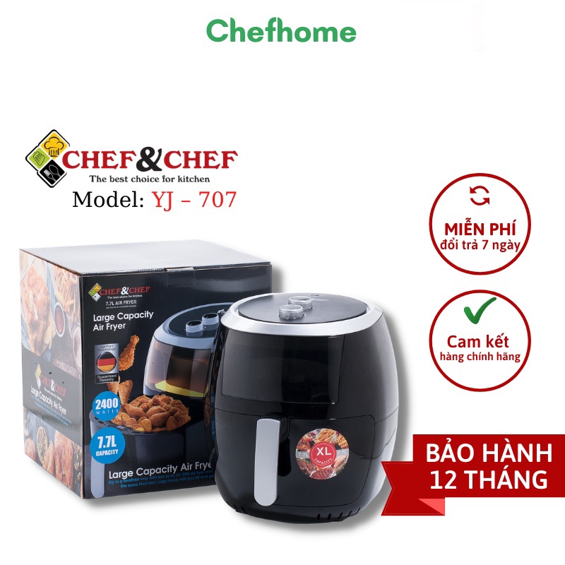 Thiết Bị Điện Gia Dụng > Đồ gia dụng nhà bếp > Nồi chiên không dầu || Nồi chiên không dầu CHEF&CHEF 7.7l (YJ – 707) ứng dụng công nghệ Rapid Air đảo nhiệt 360 độ giúp thực phẩm chín đềuCòn hàng