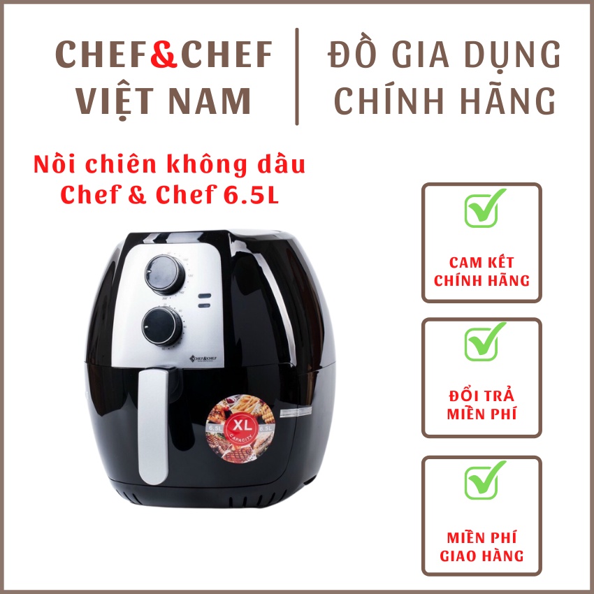 Thiết Bị Điện Gia Dụng > Đồ gia dụng nhà bếp > Nồi chiên không dầu || Nồi chiên không dầu Chef & Chef 6.5L có thể tách rời giữa khay chiên và khay hứng mỡ giúp dễ dàng vệ sinhCòn hàng