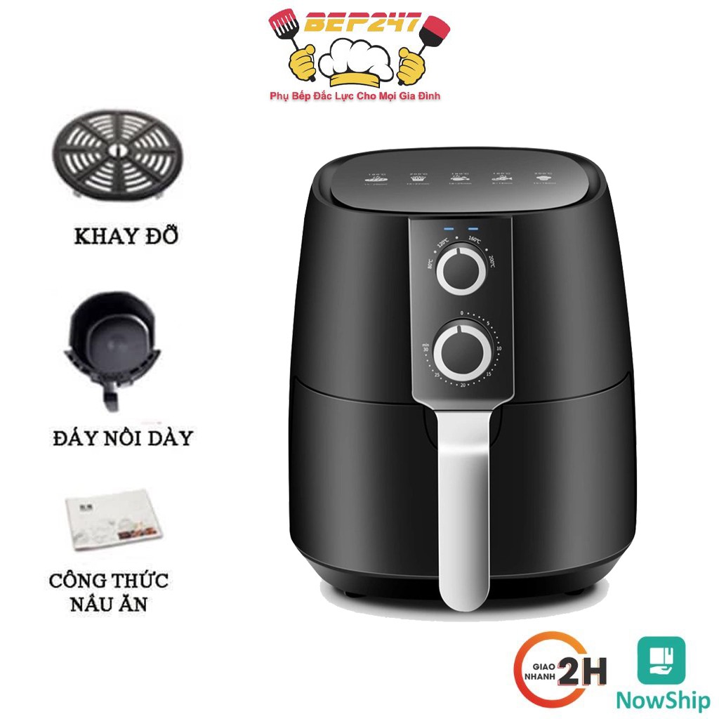 - Dung tích thiết kế với dung tích lên đến 5 lít giúp bạn có thể chiên nướng thức ăn với khối lượng lớn dành cho nhiều người, có thể thực hiện những món ăn ở dạng khối như gà, vịt...