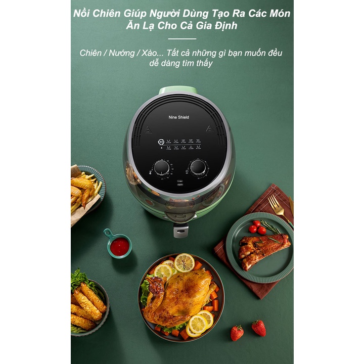 Nồi Chiên Không Dầu Cho Gia Đình Nine Shield Dung Tích 8L Đa Năng Cực Tiện Lợi