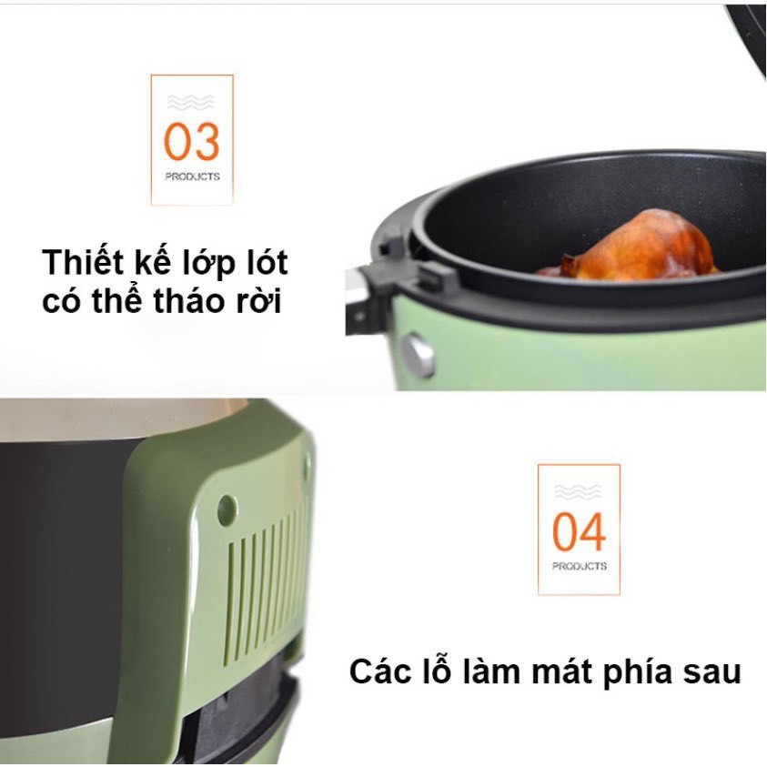 - Dung tích siêu lớn 8L giúp chiên rán đồ ăn một cách nhanh chóng, hiệu quả, lành mạnh. Nồi chiên với thiết kể mang kiểu dáng hiện đại, sang trọng, sử dụng chất liệu nhựa ABS an toàn và bền bỉ, Nồi chiên có khả năng chịu va đập và thời gian sử dụng lâu dài. Ngoài ra, lòng nồi được phủ lớp men chống dính CERAMIC, an toàn cho sức khỏe giúp cho thực phẩm không bị dính, vỡ nát trong quá trình chiên, rán…