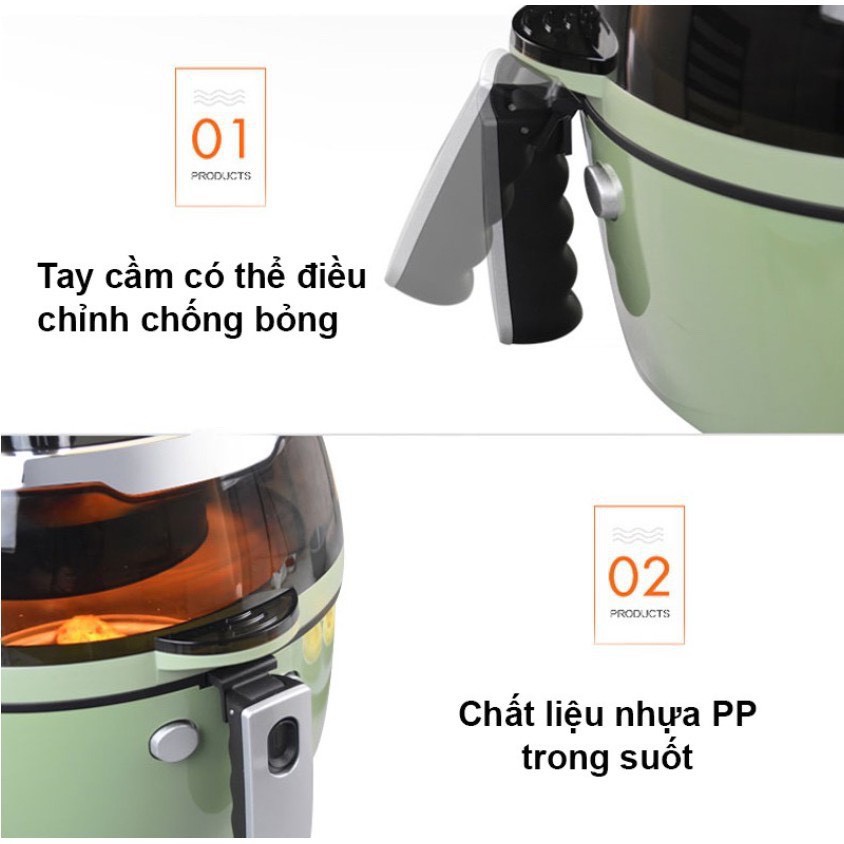 MÔ TẢ SẢN PHẨM : Nồi chiên không dầu điện tử 8L mặt kính, có tay đảo, bảo hành 12 tháng (Đen-Trắng)- Kiểu dáng: Điều khiển điện tử và điều khiển cơ