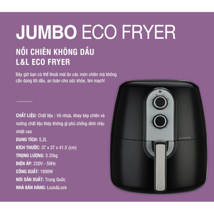 Giới thiệu Nồi chiên không dầu cơ Lock&Lock Manual Eco Fryer_5.2L EJF151BLK - Màu đen