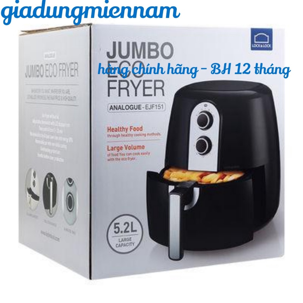 Thiết Bị Điện Gia Dụng > Đồ gia dụng nhà bếp > Nồi chiên không dầu || [Mã 273ELHA100K0 hoàn 7% đơn 500K] Nồi chiên không dầu cơ LocknLock EJF151BLK 1800W (5.2L) - Hàng Chính HãngCòn hàng