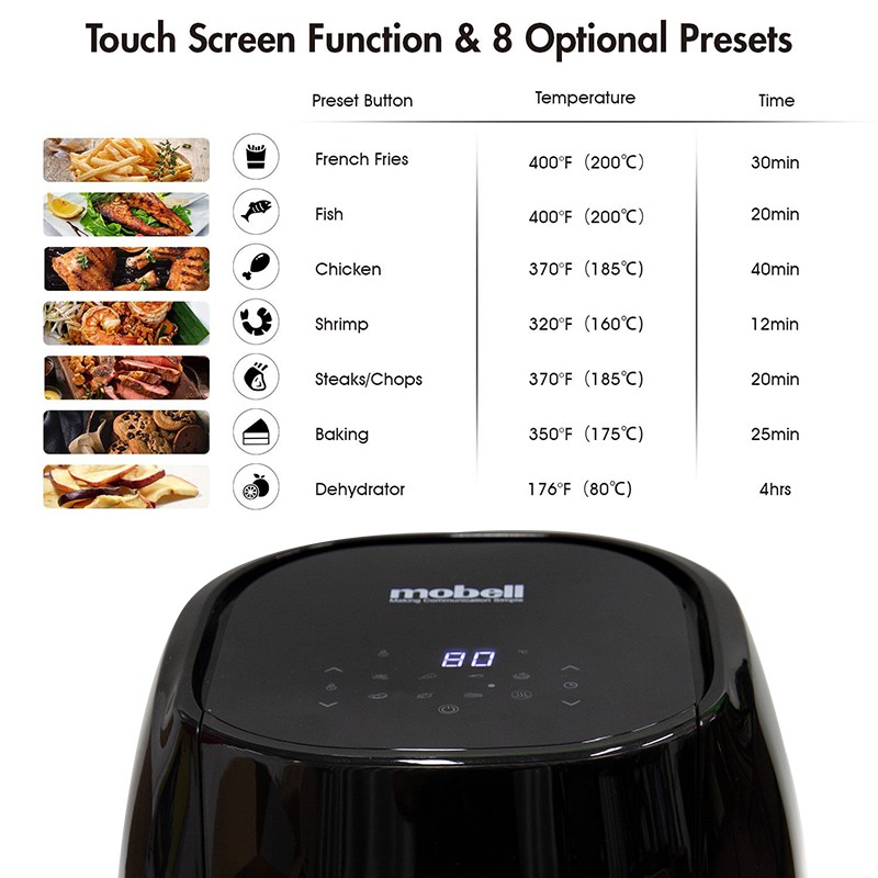 >>> Nồi Chiên Không Dầu Cảm Ứng MOBELL, Sử Dụng Công Nghệ Nướng Chân Không Giữ Lại Hương Vị Tươi Ngon, Đảm Bảo Cho Sức Khỏe, Dễ Dàng Sử Dụng Dung Tích 8L - Hàng Chính Hãng