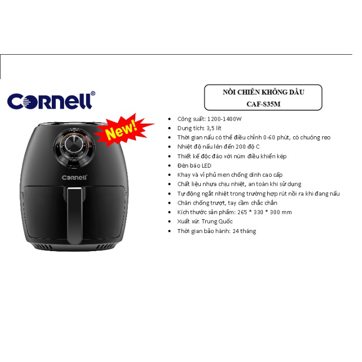NỒI CHIÊN KHÔNG DẦU CORNELL 3.5 LÍT CAF-S35M (1400W)Tính năng