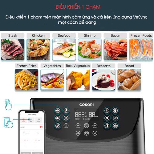 💟 Nồi chiên không dầu Cosori CS158-AF là nồi chiên thông minh khi có khả năng kết nối với Smartphone và Amazon Alexa thông qua ứng dụng VeSync.