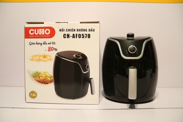 Nồi chiên không dầu Cuho CH-AF0570 dung tich 7L 1450W sở hữu kiểu dáng hiện đại, màu sắc phối kết hợp tinh tế, phù hợp sử dụng trong mọi không gian nội thất nhà bếp. Điều khiển cơ bền bỉ, có vỏ ngoài được làm từ chất liệu nhựa bền đẹp, chịu nhiệt tốt và dễ dàng lau chùi khi bị bám bẩn. Dung tích nồi chiên 7 lít phù hợp để bạn chiên thực phẩm ăn trong ngày cho gia đình khoảng 6-7 thành viên.