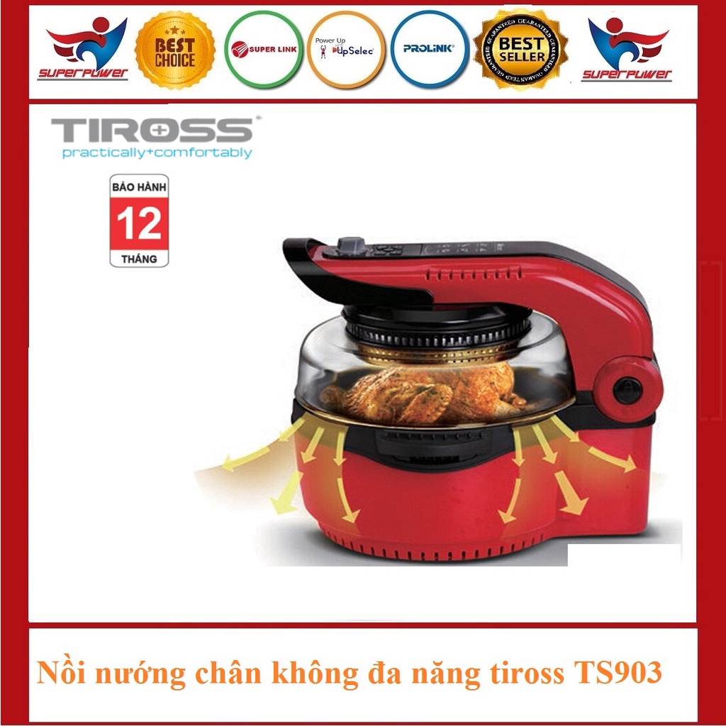 Chiên nướng thực phẩm không dùng dầu mỡ với nồi chiên chân không đa năng Tiross TS903:Nồi chiên chân không đa năng TIROSS TS903 được thiết kế sử dụng tối đa các luồng không khí luân chuyển, hoạt động liên tục có thể làm chín thực phẩm với thời gian rất nhanh như một chiếc lò vi sóng, thực phẩm được chiên không bị khô và giữ được lượng nước trong thực phẩm.