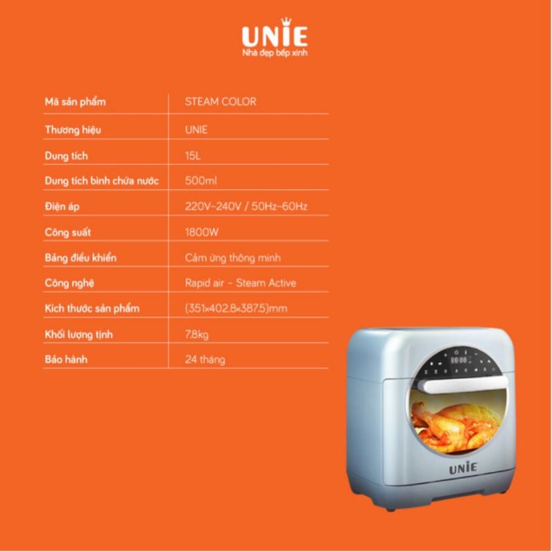 Giới thiệu NỒI CHIÊN KHÔNG DẦU ĐA NĂNG UNIE STEAM COLOR 15L CHIÊN HẤP THÔNG MINH 2 TRONG 1