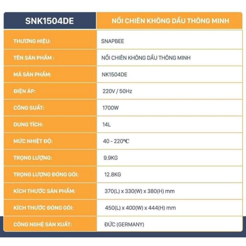 Thương hiệu: SnapBee | Xem thêm các sản phẩm Nồi chiên của SnapBeeMô tả ngắn