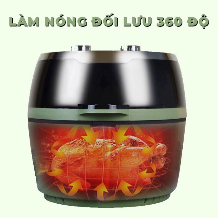 - Nồi chiên không dầu điện tử Nine Shield với mặt kính phía trước và chế độ đèn nhiệt sáng tự động giúp chị em có thể quan sát được đồ ăn khi đang nướng. Đặc biệt nồi được thiết kế rất thông minh và hiện đại với chế độ tự xoay đồ ăn khi đang nướng và quạt điều hòa nhiệt độ làm cho thức ăn chín đều mà không phải lật đi lật lại.