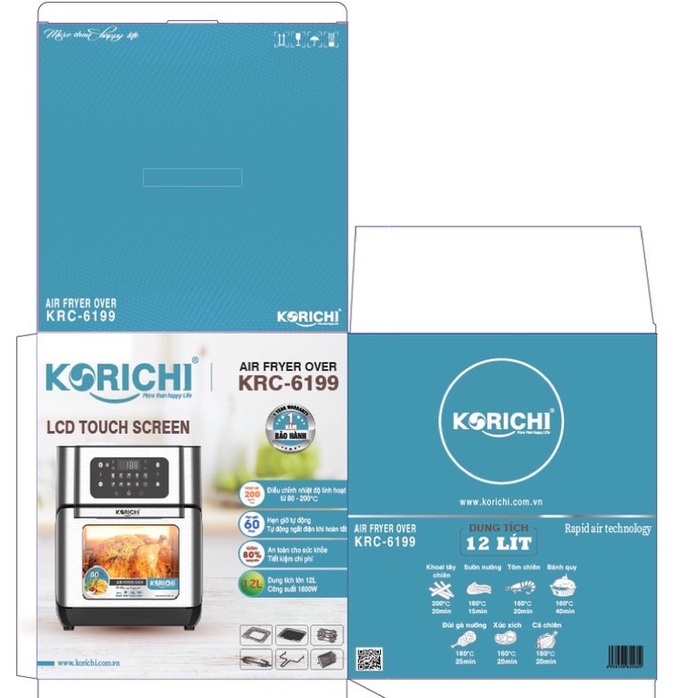 Giới thiệu [Mã ELHADEV giảm 4% đơn 300K] Nồi Chiên Không Dầu Điện Tử 12 lít KORICHI KRC-6199_Hàng chí hãng