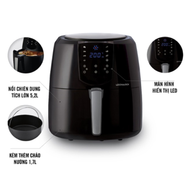 Thiết Bị Điện Gia Dụng > Đồ gia dụng nhà bếp > Nồi chiên ngập dầu || NỒI CHIÊN KHÔNG DẦU ĐIỆN TỬ 5.2L LOCK&LOCK-EJF357BLKCòn hàng