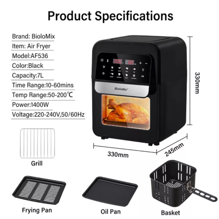 Nồi chiên không dầu điện tử 7 Lít Biolomix AF536Thông số kỹ thuật sản phẩm