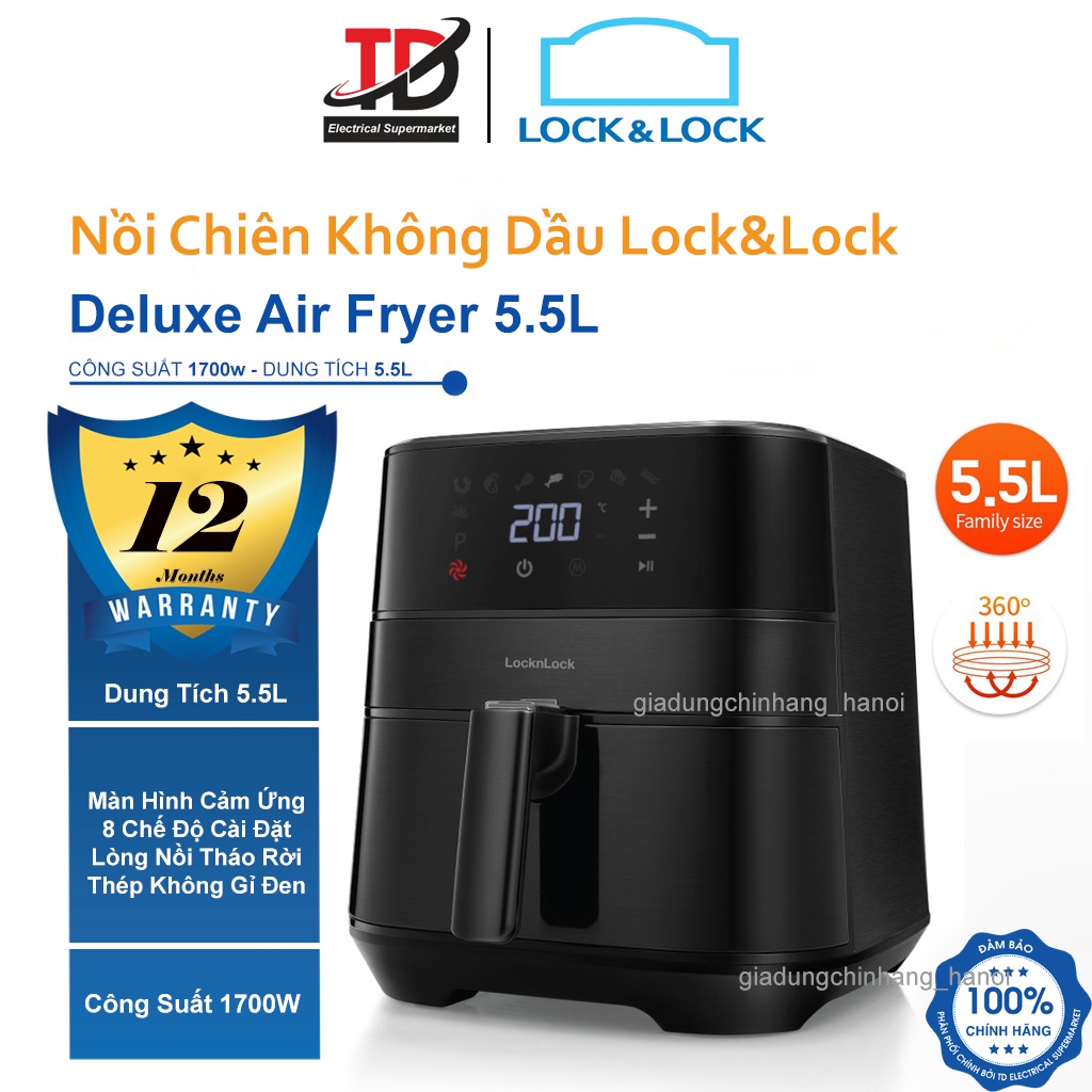 Giới thiệu [Mã ELHAMS5 giảm 6% đơn 300K] Nồi Chiên Không Dầu Điện Tử Lock&Lock Deluxe Air Fryer 5.5Lit/1700W - Hàng Chính Hãng