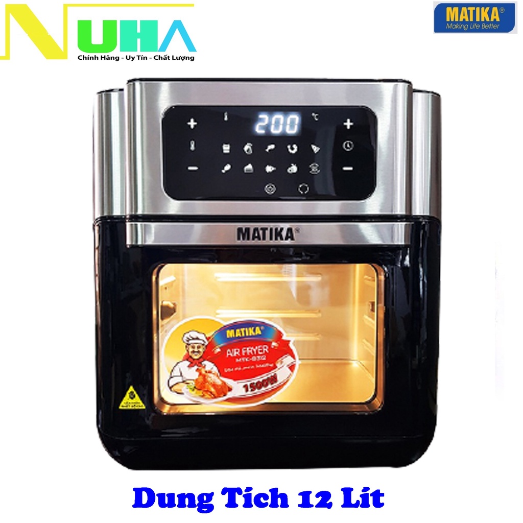 Nồi chiên không dầu điện tử dung tích 12L Matika-9312, nướng nguyên con GÀ, công suất 1500W, bảo hành 12 tháng
