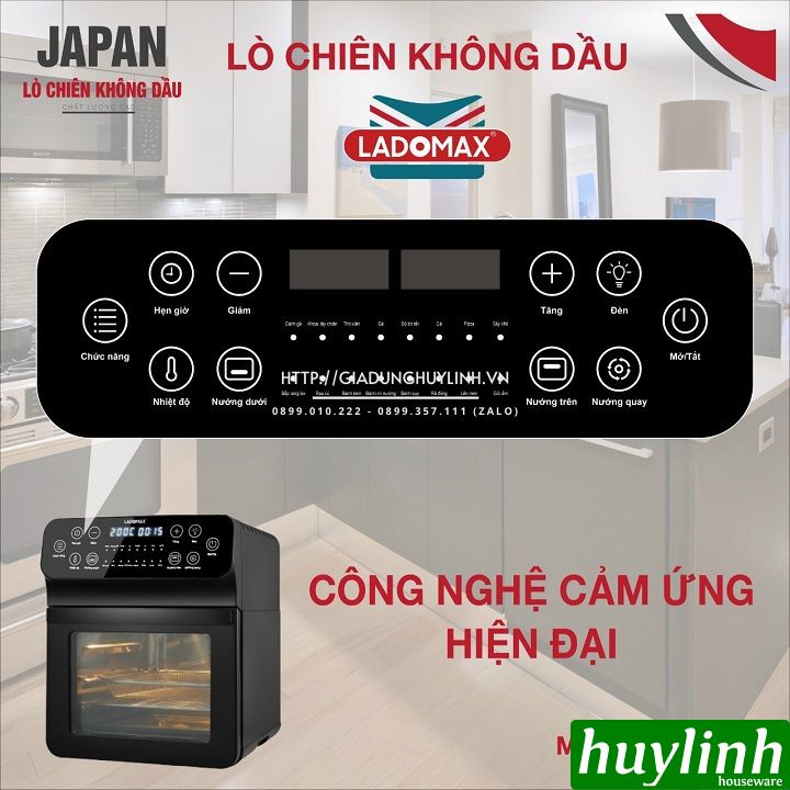 [Mã ELHAMS5 giảm 6% đơn 300K] Nồi chiên không dầu điện tử Ladomax HA-555 - 16 lít - 16 chức năng