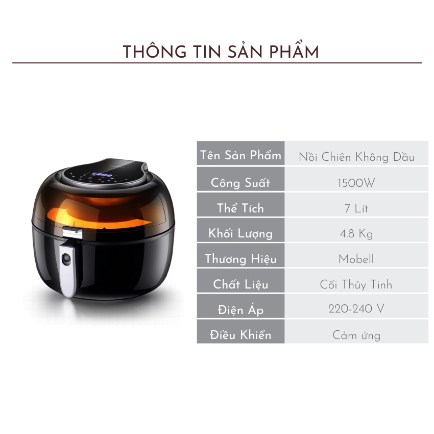 Giới thiệu Nồi Chiên Không Dầu Điện Tử Mobell 7L Công Suất 1500W Điều Khiển Cơ Hàng Chính Hãng Bảo Hành 12 Tháng