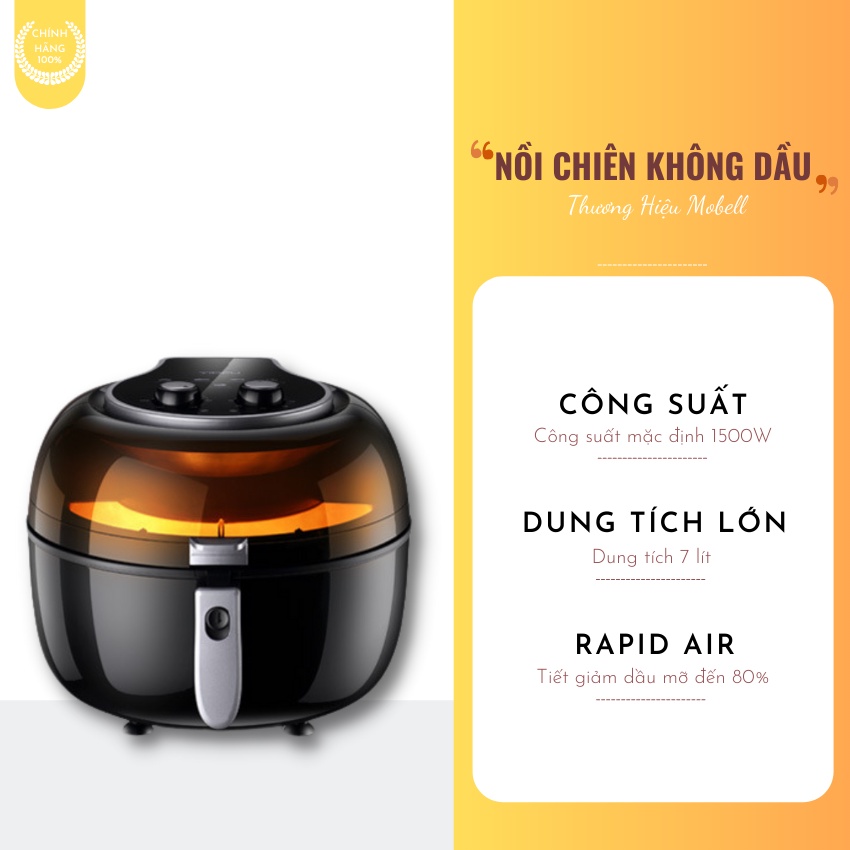 Thiết Bị Điện Gia Dụng > Đồ gia dụng nhà bếp > Nồi chiên không dầu || Nồi Chiên Không Dầu Điện Tử Mobell 7L Công Suất 1500W Điều Khiển Cơ Hàng Chính Hãng Bảo Hành 12 ThángCòn hàng