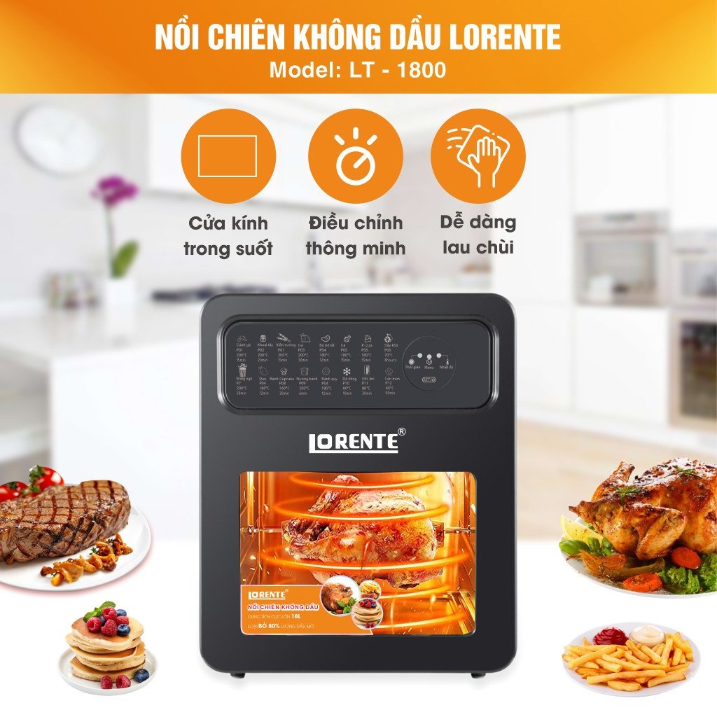 Thiết Bị Điện Gia Dụng > Đồ gia dụng nhà bếp > Nồi chiên không dầu || Nồi chiên không dầu điện tử dung tích lớn 18L Lorent-1800, nướng gà nguyên conCòn hàng