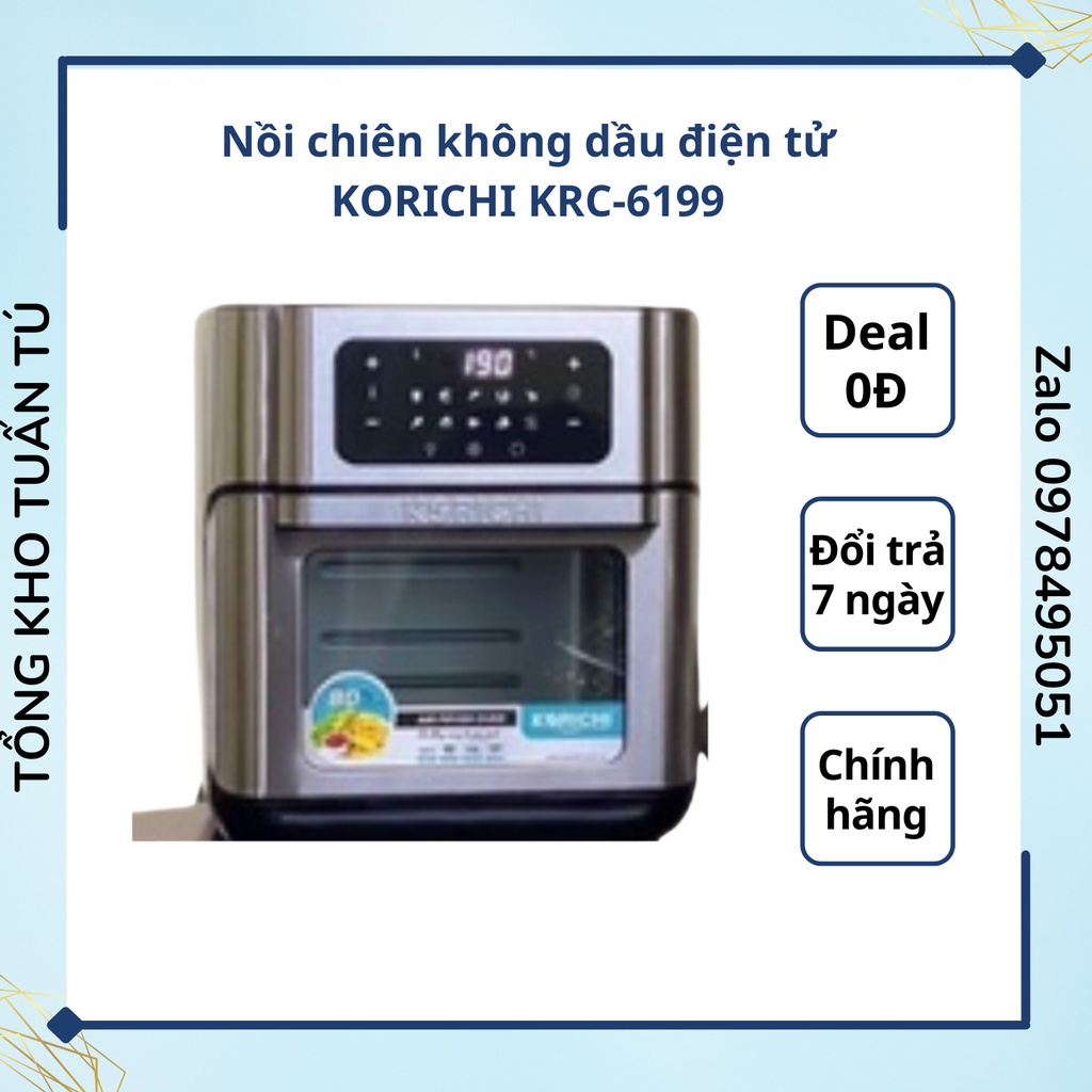 Thiết Bị Điện Gia Dụng > Đồ gia dụng nhà bếp > Nồi chiên không dầu || Nồi chiên không dầu điện tử KORICHI KRC-6199 12L cảm ứng đa năngCòn hàng