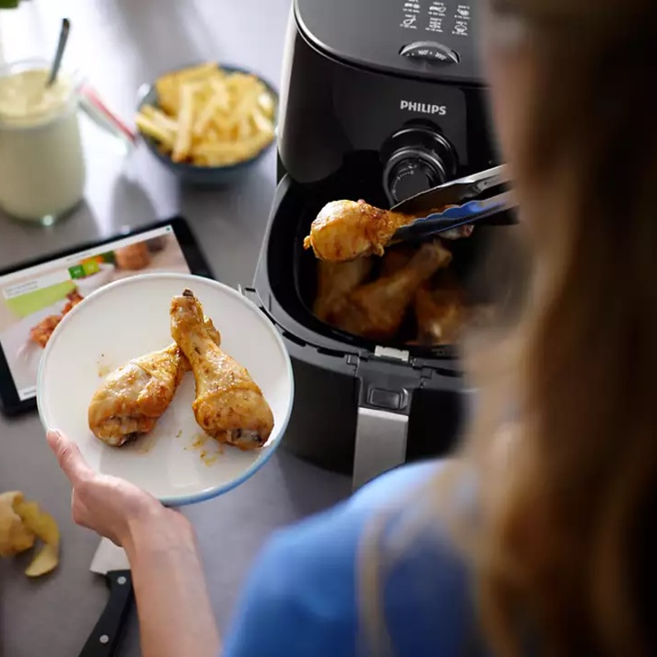 - Với nồi chiên không khí Philips, bạn sẽ không cần phải làm nóng trước vì bếp luôn ở chế độ sẵn sàng. Máy khởi động nhanh hơn và duy trì vận tốc cao trên toàn bộ quá trình nấu nướng, giúp bạn tiết kiệm thời gian nấu nướng mỗi ngày.