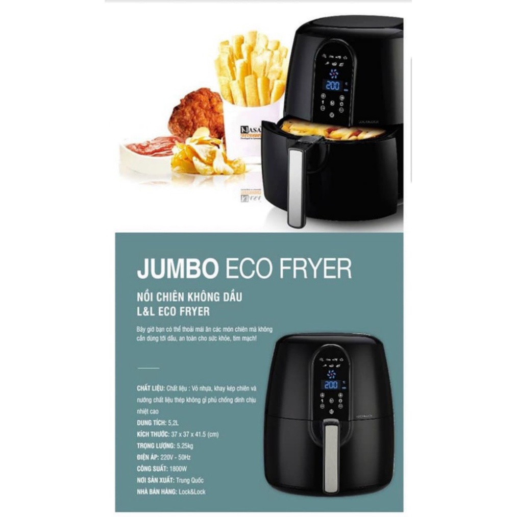 Thiết Bị Điện Gia Dụng > Đồ gia dụng nhà bếp > Nồi chiên không dầu || Nồi chiên không dầu điện tử Lock&Lock EJF351 5.2L 1800W chính hãngCòn hàng