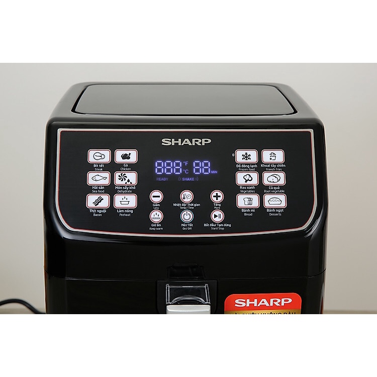 Nồi chiên không dầu Sharp với màn hình hiển thị đèn LED trắng, dễ thao tác, giúp bạn dễ dàng thực hiện đa dạng món ăn cho cả gia đình: Bít tết, gà, hải sản, món sấy khô, thịt nguội, làm nóng, đồ đông lạnh, khoai tây chiên, rau xanh, của quả, bánh mì, bánh ngọt.