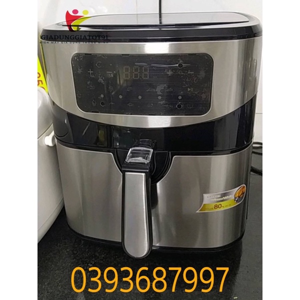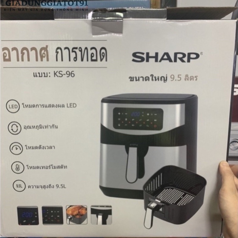 Nồi Chiên Không Dầu Điện tử Sharp KS96 9.5 Lít (T9-New2021) - Dung Tích Siêu Lớn, Bảo Hành 12 Tháng, vừa con gà 3kgĐẶC ĐIỂM NỔI BẬT: Nồi Chiên Không Dầu Sharp 9.25 lít dung tích lớn chiên cả con gà to trên 3kg (quá khủng) - Dùng chiên nướng thực phẩm không cần dầu, hấp rau củ bọc giấy bạc, rã đông thực phẩm. - Công nghệ chiên không dầu giảm 80% lượng dầu mỡ so với chiên rán thông thường, tốt hơn cho sức khỏe. - Điều chỉnh núm vặn tùy chỉnh hẹn giờ, nhiệt độ nướng chính xác, dễ dàng và tiện lợi trong cuộc sống. - Chất liệu lò: lòng nồi nhôm sơn chống dính. - Vỉ nướng làm bằng chất liệu hợp kim sơn chống dính. - Công nghệ làm nóng : 3 chiều. - Chức năng chính: Nướng thực phẩm, Chiên thực phẩm, Nướng bánh... - Tiện ích kèm theo: + Tay cầm bọc nhựa cách nhiệt + Có khe hở hứng mỡ thừa + Quạt đối lưu + Có hẹn giờ nấu xong tự ngắt - Nhiệt độ có thể điều chỉnh : 0 - 200 độ C THÔNG TIN CƠ BẢN Bảo hành: 12 tháng. Dung tích: 9.5L Hãng sản xuất: SHARP. Phương thức bảo hành: Bằng phiếu bảo hành. Xuất xứ: Thái Lan.