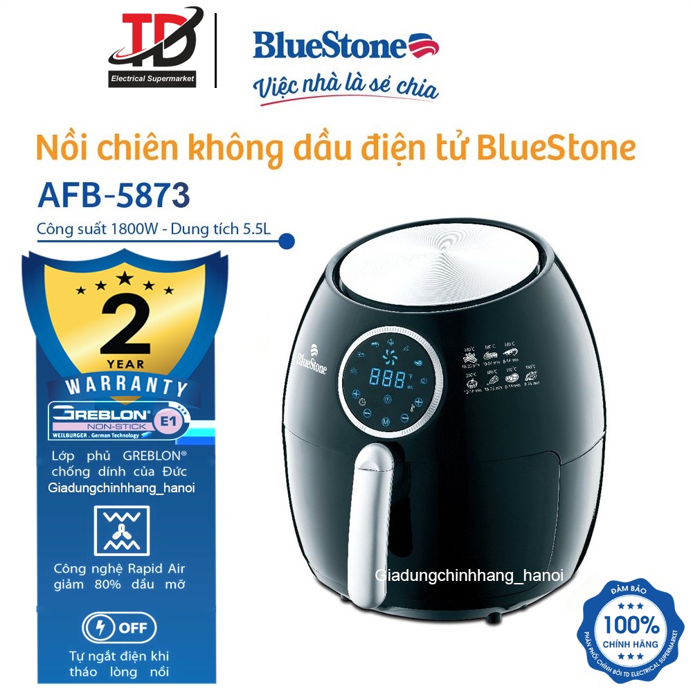 Giới thiệu [Mã ELHAMS5 giảm 6% đơn 300K] Nồi Chiên Không Dầu Điện Tử Bluestone AFB-5873,5.5Lit - 1800W, Bảo Hành Chính Hãng 2 Năm