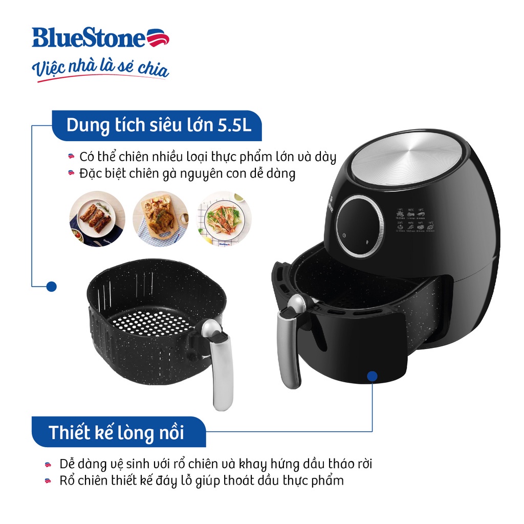 [Mã ELHAMS5 giảm 6% đơn 300K] Nồi Chiên Không Dầu Điện Tử Bluestone AFB-5873,5.5Lit - 1800W, Bảo Hành Chính Hãng 2 Năm