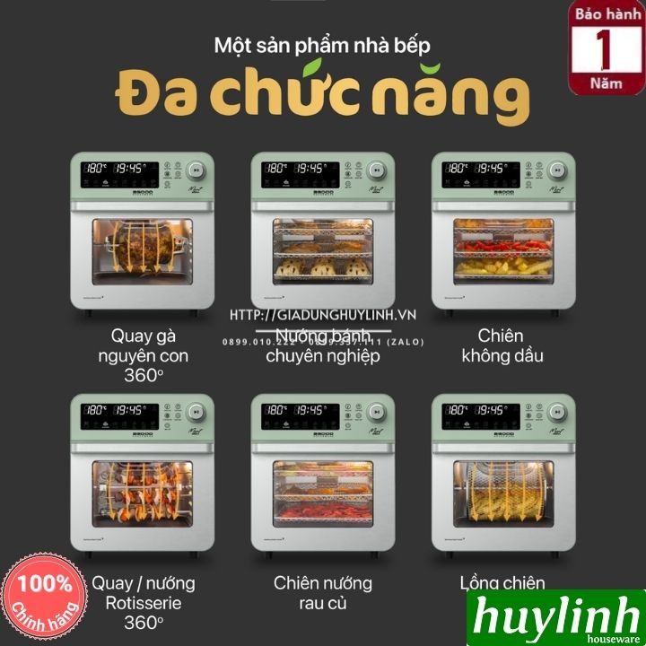 - Phụ kiện: Vỉ nướng, khay nướng, lồng đảo,trục quay Roti, Bộ xiên quay, Khay hứng dầu mỡ, Dụng cụ gắp