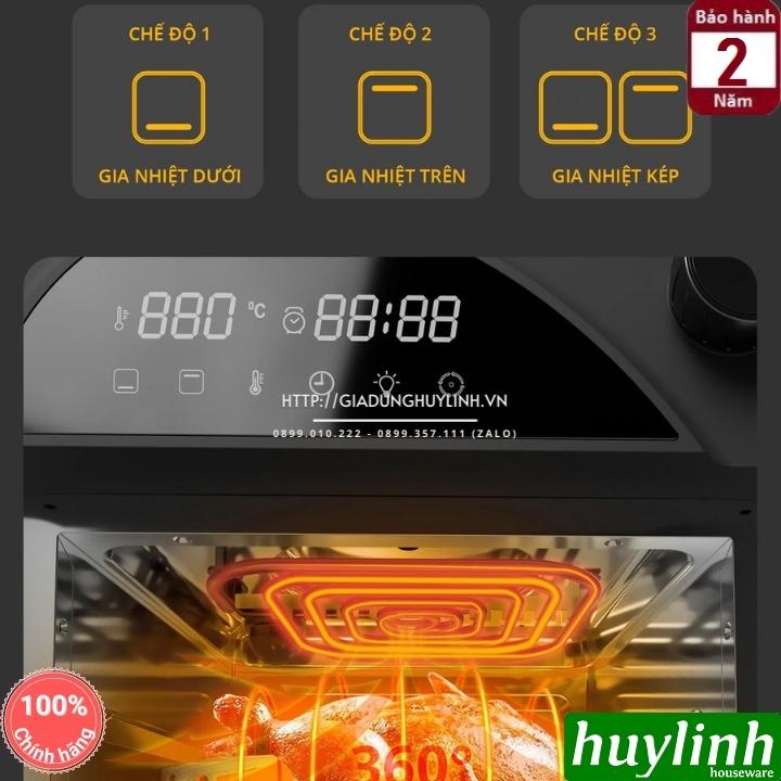 - Chế độ gia nhiệt kép: Nhiệt trên hoặc nhiệt dưới hoặc cả 2 nhiệt trên dưới giúp chiên nướng thực phẩm chín đều.