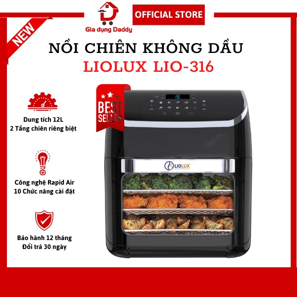 Giới thiệu Nồi chiên không dầu điện tử Liolux LIO-316 Dung tích 12 lít, Công suất 1800W, Thay lò vi sóng nướng, Bảo hành 12 tháng