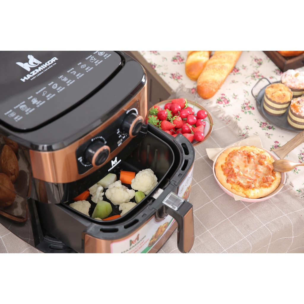 - Nồi chiên không dầu điện tử Thái Lan Hazmikor MVB-10 có thể điều chỉnh núm vặn tùy chỉnh hẹn giờ, nhiệt độ nướng chính xác, dễ dàng và tiện lợi trong cuộc sống.