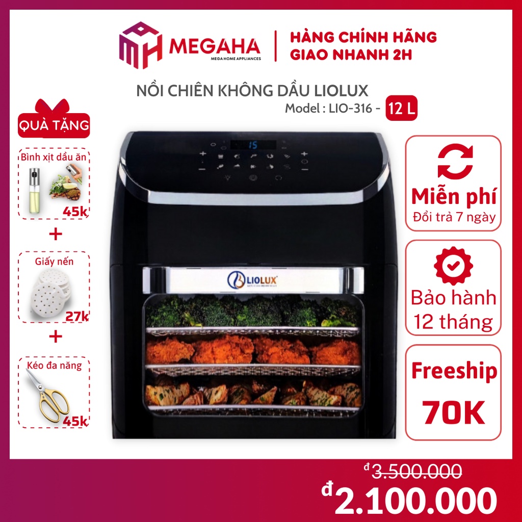 Thiết Bị Điện Gia Dụng > Đồ gia dụng nhà bếp > Nồi chiên không dầu || Nồi chiên không dầu điện tử Liolux LIO-316 dung tích 12 lítCòn hàng