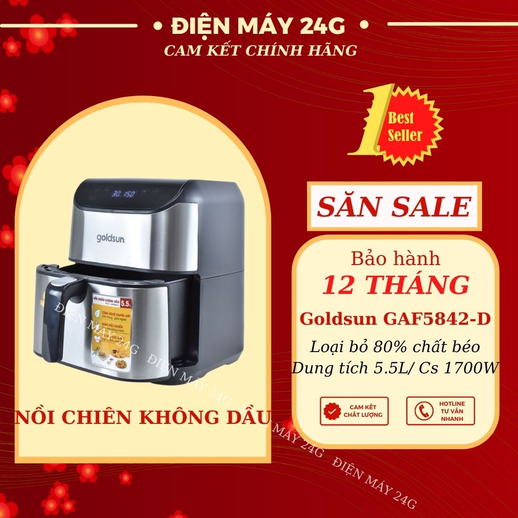 Nồi chiên không dầu Goldsun GAF5842-D 5.5L nồi chiên điện tử lòng nồi chống dính công nghệ truyền nhiệt nhanh an toàn